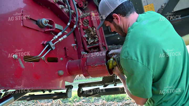 Farmer Connecting PTO onto Combine Head