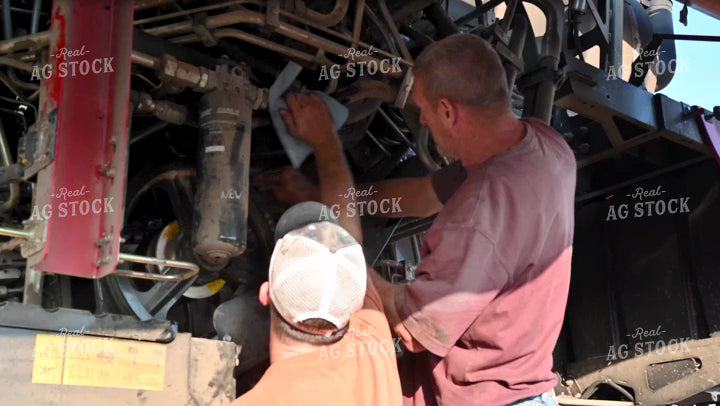 Multigenerational Farm Familiy Repairing Combine in a Bean Field - 430
