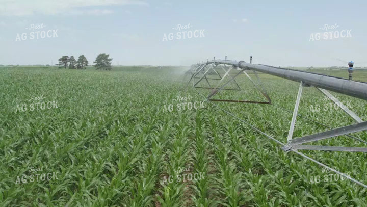 Aerial of Irrigation Pivot Watering Green Corn Field 114042